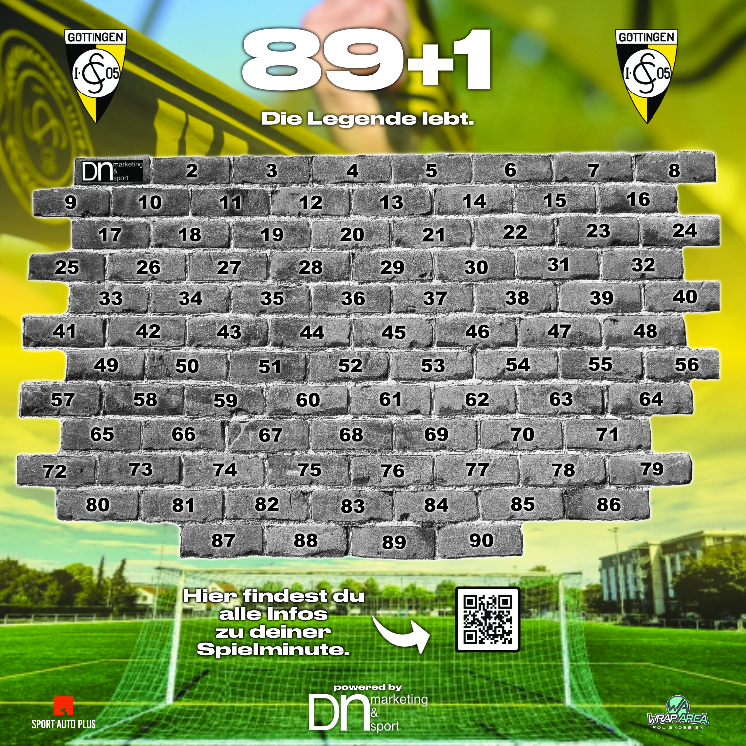 Dein Name oder Unternehmenslogo erscheint auf unseren offiziellen Social-Media-Kanälen – DU präsentierst das Tor. Außerdem wirst Du dauerhaft auf unserer Sponsorenwand 89+1 sichtbar sein.