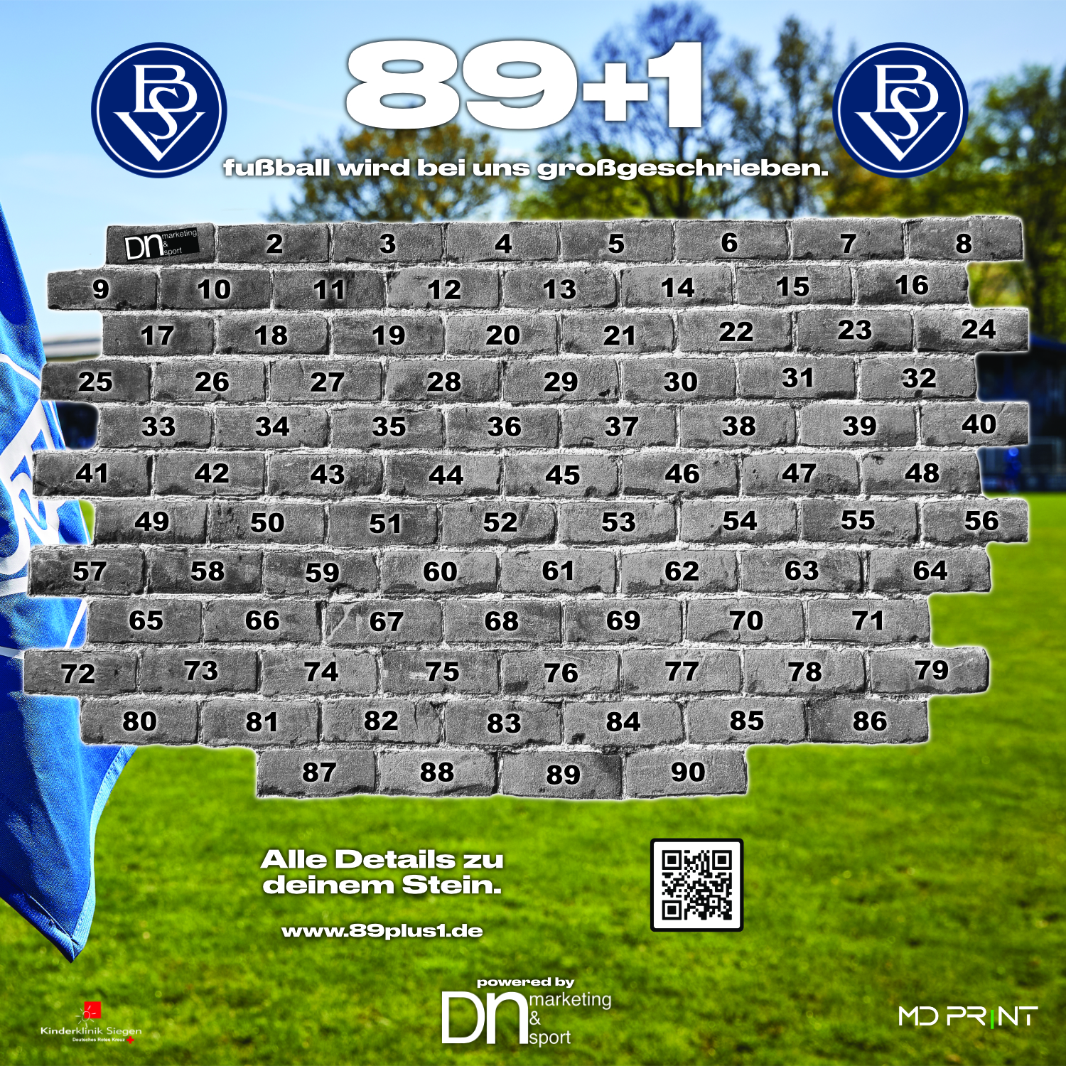 Dein Name oder Unternehmenslogo erscheint auf unseren offiziellen Social-Media-Kanälen – DU präsentierst das Tor. Außerdem wirst Du dauerhaft auf unserer Sponsorenwand 89+1 im Stadion am Panzenberg sichtbar sein.