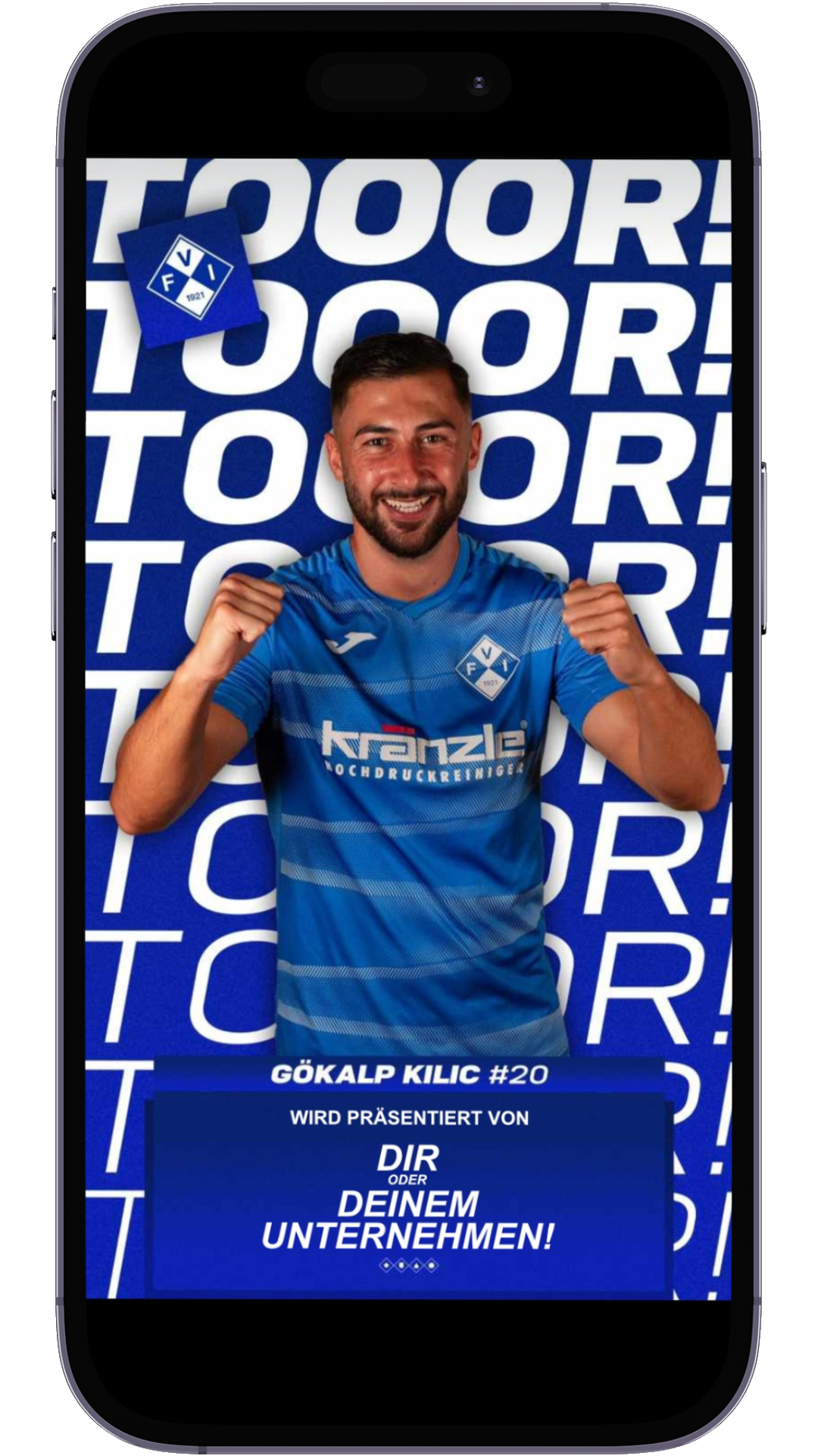 Dein Name oder Unternehmenslogo erscheint auf unseren offiziellen Social-Media-Kanälen – DU präsentierst das Tor. Außerdem wirst Du dauerhaft auf unserer Sponsorenwand 89+1 sichtbar sein.